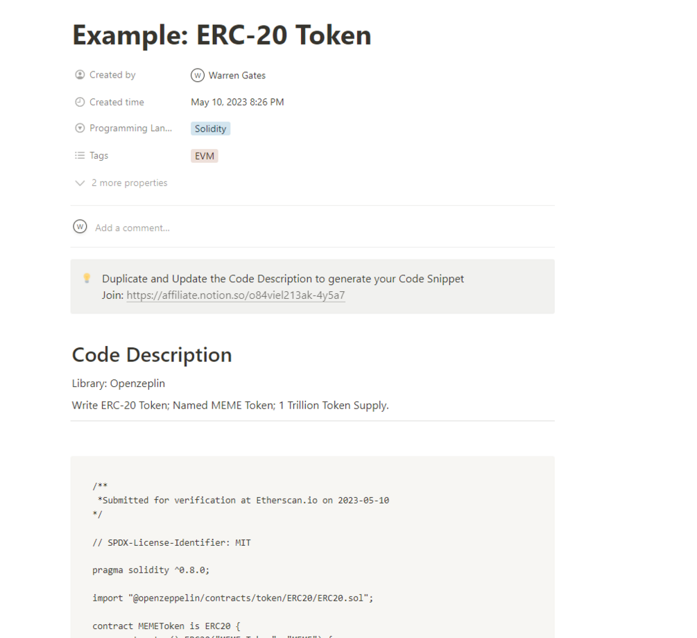 Notion AI-Powered Template for Creating Code Snippets